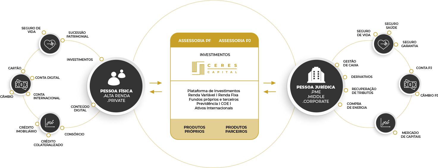Assessoria de Investimentos que gera valor para parceiros — pessoa física e jurídica — por meio das melhores ferramentas financeiras de curto, médio e longo prazo, com foco na conquista de objetivos e construção de patrimônio.